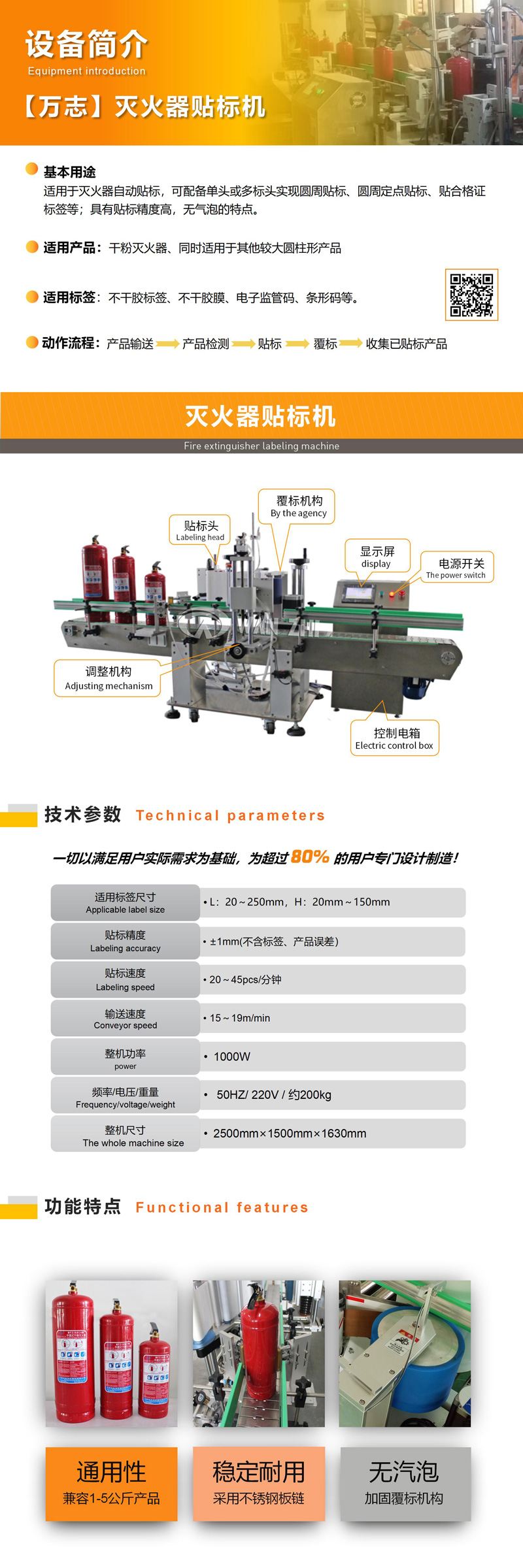 基本用途: 全自動滅火器貼標機適用於滅火器自動貼(tiē)標,可圓(yuán)周貼標、圓周定點貼標。具有貼標精度高,無氣泡的特點(diǎn)。 www.lzzxxz.com