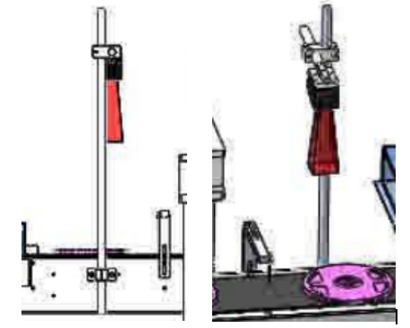 2.輸送帶上加裝攔停定位機構,因B工位已經定位,且貼標機,也調好了左右移動的位(wèi)置,所以該工位隻是往下壓,即可貼標在指定位置,