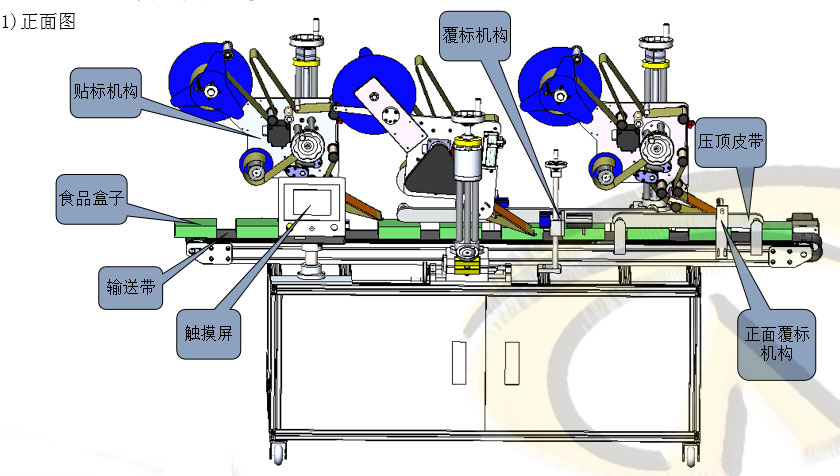 人工把食品盒子放(fàng)到貼標機輸送帶上即(jí)可(kě),機器自動(dòng)完成食品盒子的輸送,導正,定位(wèi),貼(tiē)標(biāo),覆標動作,人工再把成品取下。