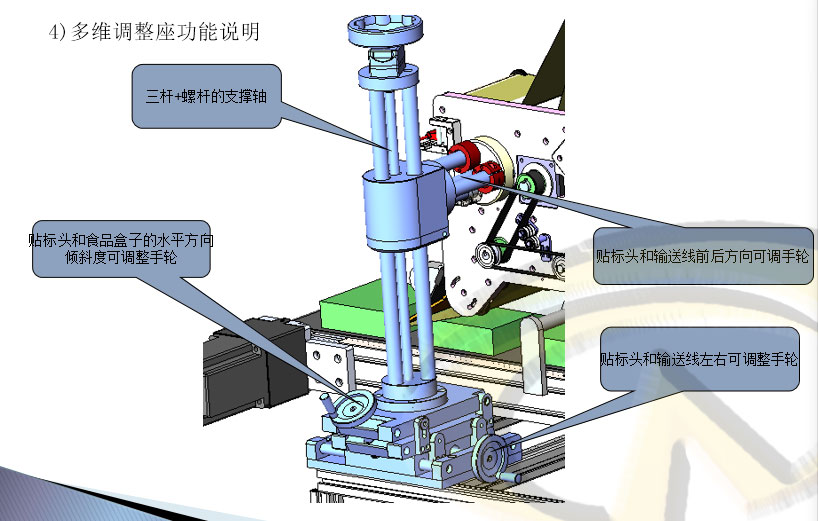 標頭相對輸送帶的前後方向手(shǒu)輪可調,不同長度標(biāo)簽使用時候調整方便;