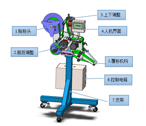 3)上下調整機構:調整貼標頭上下,匹配流水線的高度。