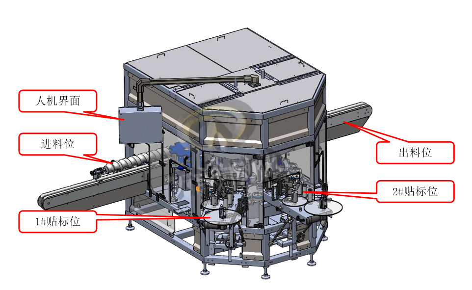 5.貼標完(wán)成後隨轉盤向後運動至出料星(xīng)輪