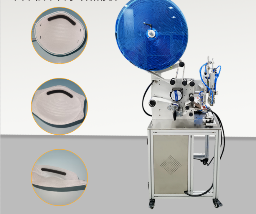 半自動口罩海綿條貼附機,已經取得(dé)國家實用新型專利,配置加(jiā)高精度吸標頭,采用一起草 www.17.com网站新(xīn)研(yán)發的取(qǔ)標機構,能有效解決人工貼條引起的變形、誤差(chà)等問題。設備從原料進入到成品(pǐn)輸出,半自動化作業,效率比人工操作高(gāo)出幾(jǐ)倍,大大節(jiē)省了人工成本。