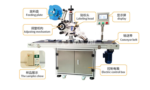 針對藥品包裝盒貼標研發,采用平麵貼標(biāo)的方式,配置氣缸攔停貼標,增加穩定性(xìng),提高貼(tiē)標效率,加配分瓶(píng)機構可節省更多人工、提高貼標效率(lǜ)。可選配打碼機或噴碼機到貼標頭,可實現在標簽上打印生產日期、批號和噴印條碼等信息。